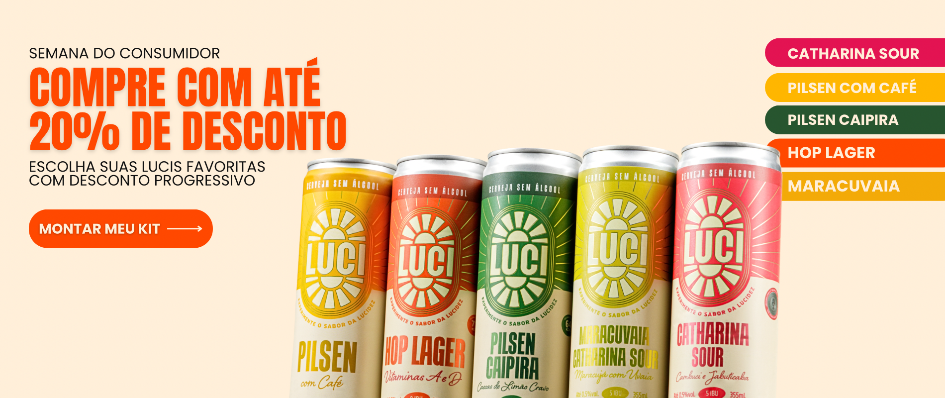 A LUCI não é apenas saborosa, mas também uma escolha consciente para sua saúde. Nossas cervejas sem álcool são criadas para oferecer uma experiência única, transformando cada gole em bem-estar com uma pitada generosa de com brasilidade. Presamos pelo uso de ingredientes da biodiversidade brasileira para agregar em aromas frescos e sabores. Saboreie uma LUCI bem gelada e descubra como é agradável fazer boas escolhas com mais lucidez enquanto saboreia uma boa cerveja sem álcool.